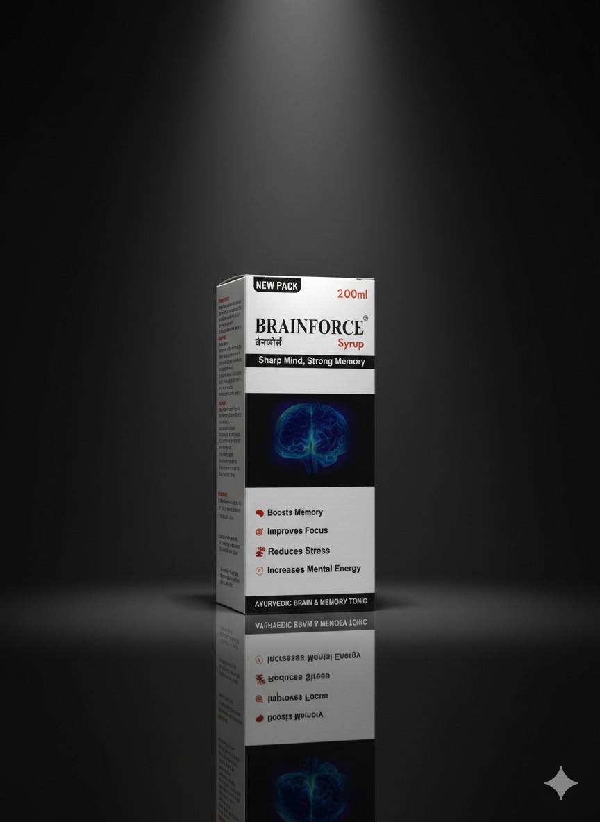 Brainforce Syrup is a gentle, Ayurvedic brain health supplement specially formulated to support memory, focus, learning ability, and healthy brain development in children. Made with a blend of powerful natural herbs and brain-nourishing nutrients, this easy-to-take syrup helps support growing minds during important learning and developmental years.